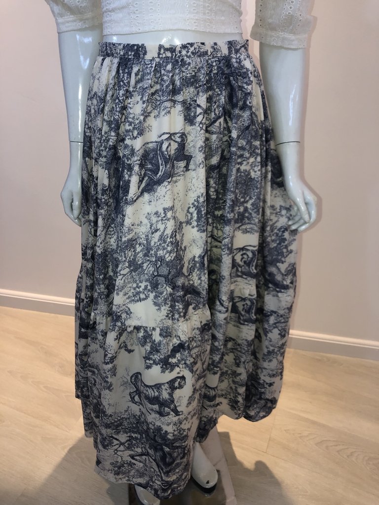 Maravilhosa Saia no comprimento mídi em tecido de algodão com linho e forro. Fechamento em zíper invisível na lateral. Saia inspiração da Grife Christian Dior. ( não acompanha etiqueta da grife ) .